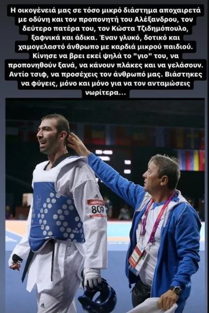 Τρεις μήνες μετά, ο Κώστας Τζιδημόπουλος «κίνησε να βρει εκεί ψηλά το “γιο” του να προπονηθούν ξανά, να κάνουν πλάκες και να γελάσουν».Ολόκληρη η ανάρτηση στο Instagram: «Η οικογένειά μας σε τόσο μικρό διάστημα αποχαιρετά με οδύνη και τον προπονητή του, τον Κώστα Τζιδημόπουλο, ξαφνικά και άδικα. Έναν γλυκό, δοτικό και χαμογελαστό άνθρωπο με καρδιά μικρού παιδιού. Κίνησε να βρει εκεί ψηλά το “γιο” του, να προπονηθούν ξανά, να κάνουν πλάκες και να γελάσουν. Αντίο τσιφ, να προσέχεις τον άνθρωπό μας. Βιάστηκες να φύγεις, μόνο και μόνο για να τον ανταμώσεις νωρίτερα…».