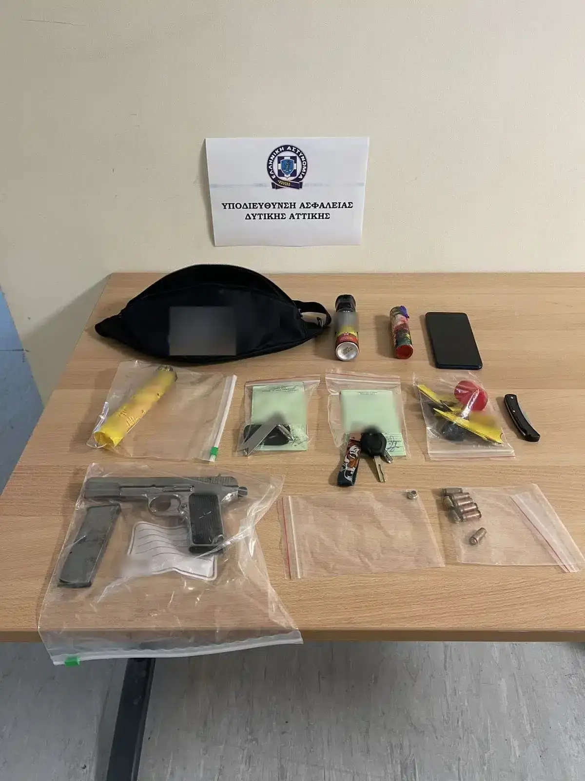 Ο οδηγός του δεύτερου αυτοκινήτου δε συμμορφώθηκε στις υποδείξεις των αστυνομικών, ανέπτυξε ταχύτητα, πραγματοποιώντας επικίνδυνους ελιγμούς και ακολούθησε καταδίωξη, έως ότου ακινητοποιήθηκε με ασφάλεια, δεσμεύτηκαν οι τέσσερις επιβαίνοντες και βρέθηκε στο εσωτερικό του αυτοκινήτου πιστόλι.