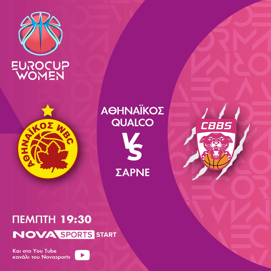 19:30 EuroCup Γυναικών: Αθηναϊκός Qualco-Σαρνέ Novasports Start σε περιγραφή του Γιάννη Πάγκου και ρεπορτάζ του Ευγένιου Δαδαλιάρα
