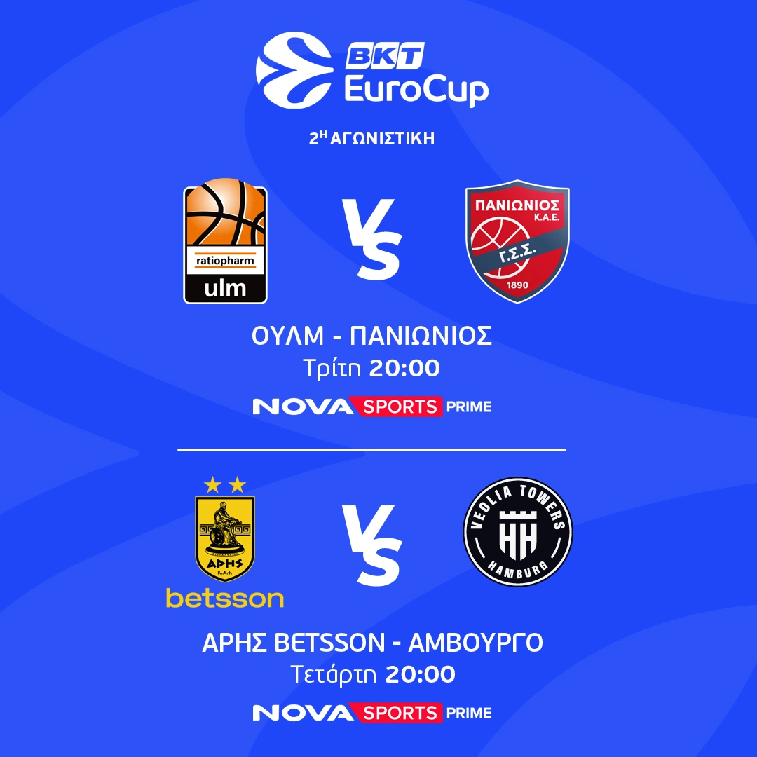 Το EuroCup με τη διπλή ελληνική εκπροσώπηση, συνεχίζεται με την 2η αγωνιστική με τον Πανιώνιο να δοκιμάζεται εκτός έδρας κόντρα στην Ουλμ (7/10, 20:00) και να επιδιώκει το 2Χ2 και τον Άρη Betsson να υποδέχεται το Αμβούργο (8/10, 20:00), επιδιώκοντας και οι «κιτρινόμαυροι» το απόλυτο νικών.