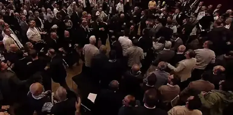 Καθίστε κάτω. Να εκκενώσω την αίθουσα ή να ακυρώσω τη συνέλευση; Ποιο είναι το δικαίωμά σας; Κανένας οπαδός της Μπεσίκτας δεν μπορεί να σηκώσει χέρι εναντίον ενός οπαδού της ομάδας. Αυτό έχουμε δει από τους παλαιότερους».