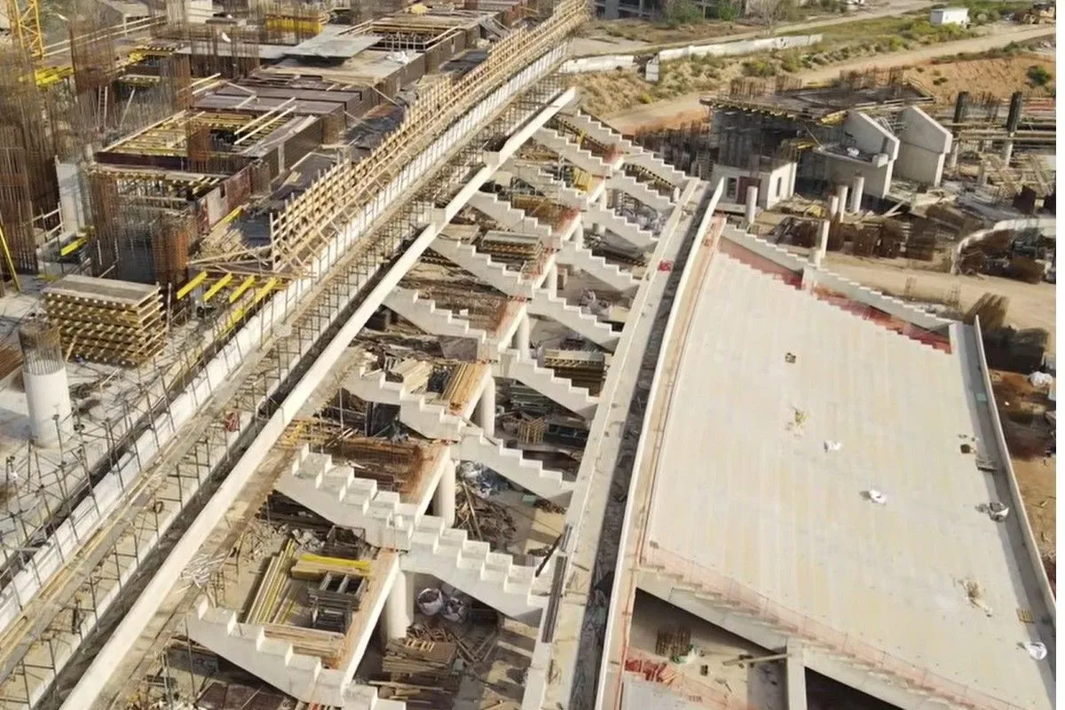 Στο εργοτάξιο, οι εξέδρες έχουν αρχίσει να αποκτούν σχήμα και όγκο: μεταλλικές και οπλισμένες δομές είναι ορατές στα σημεία που προβλέπεται η τοποθέτηση καθισμάτων, ενώ οι εργασίες θεμελίωσης και η κατασκευή υποδομών υποστήριξης—όπως δίκτυα αποχέτευσης, drainage, ηλεκτρομηχανολογικές εγκαταστάσεις, ανυψωτικές διατάξεις και τεχνικές διευθετήσεις για φωτισμό και ασφάλεια—επιταχύνονται. Παράλληλα εκτελούνται εργασίες για τις περιφερειακές προσβάσεις και τις ζώνες εξυπηρέτησης, με στόχο τη λειτουργική ενοποίηση των χώρων και την εξασφάλιση ροής κατασκευαστικών υλικών και μηχανημάτων.