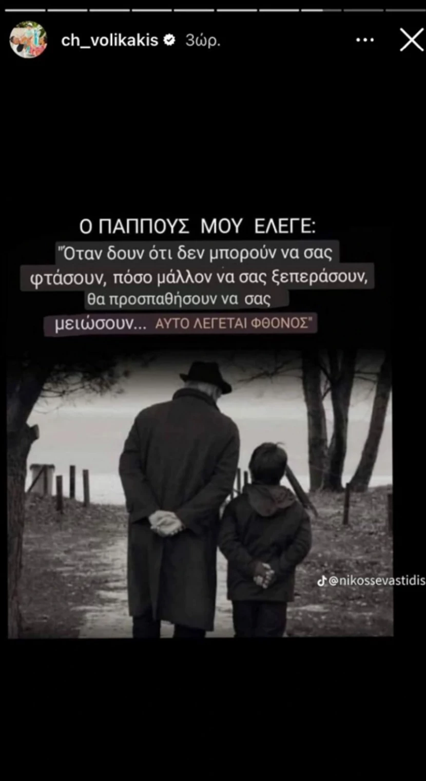 «Ο Χρήστος Βολικάκης έκανε story στο Instagram και έγραψε τα εξής: