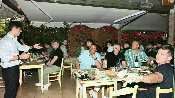 Εν μέσω οικογενειακού κλίματος, ο διοικητικός ηγέτης της «πράσινης» ΚΑΕ τους ευχήθηκε καλή επιτυχία, λίγα εικοσιτετράωρα πριν την πρώτη τους δοκιμασία στην καταληκτική φάση της κορυφαίας ευρωπαϊκής διασυλλογικής διοργάνωσης και τον ημιτελικό με τη Φενερμπαχτσέ (24/5).