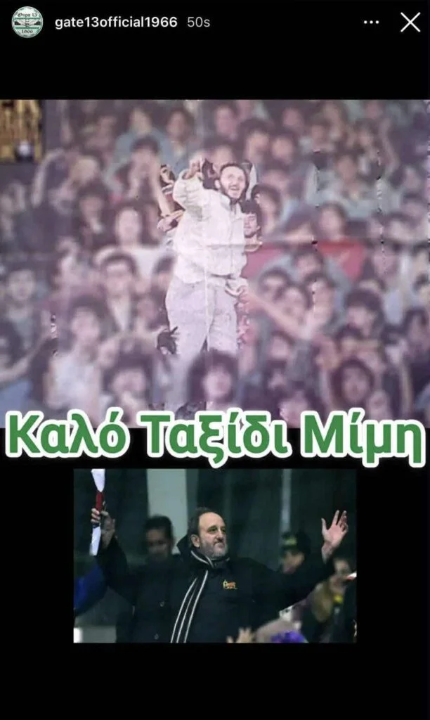 Και η Θύρα 13 έστειλε το μήνυμά της για την απώλεια του «Αρχηγού». Συγκεκριμένα, ο μεγαλύτερος σύνδεσμος του Παναθηναϊκού έκανε ένα story στο Instagram με δύο φωτογραφίες του Δημήτρη Χατζηχρήστου γράφοντας «Καλό ταξίδι Μίμη».