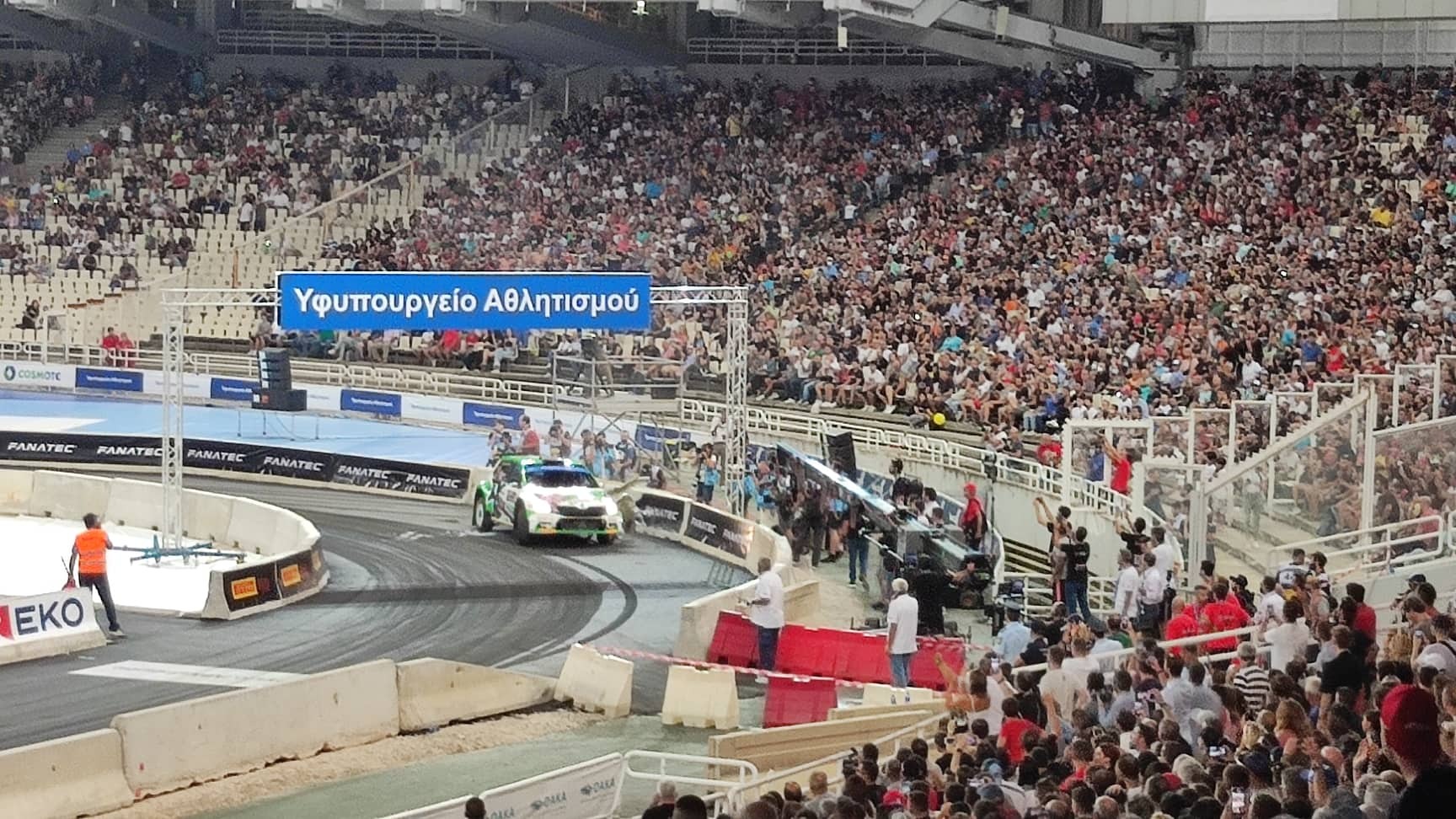 Η Πρωταθλήτρια Ευρώπης στο βάδην Αντιγόνη Ντρισμπιώτη βρίσκεται στο ΟΑΚΑ και κάθισε στη θέση του συνοδηγού του Ford Fiesta που οδήγησε ο Κεν Μπλοκ.