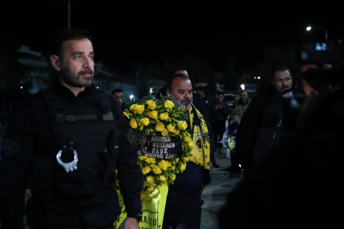 Ο Μάριος Ηλιόπουλος προσέγγισε το σημείο έξω από την Τούμπα και κατέθεσε στεφάνι στο μνημείο των φίλων του ΠΑΟΚ που έχασαν τη ζωή τους στο δυστύχημα στη Ρουμανία. Η τελετή κράτησε λίγο, με τον ίδιο να παραμένει για σύντομο χρόνο και να αποχωρεί με συνοδεία.