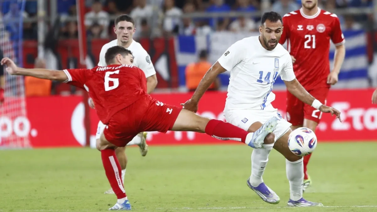 Το πρώτο ημίχρονο ήταν εκ διαμέτρου αντίθετο σε σχέση με το ίδιο διάστημα απέναντι στη Λευκορωσία. Άριστα διαβασμένοι και με άψογη τακτική οι Δανοί πίεσαν ασφυκτικά τους Έλληνες μέσους γνωρίζοντας ότι δεν είναι και οι καλύτεροι χειριστές της μπάλας στον κόσμο, με αποτέλεσμα να αποκόψουν το ελληνικό transition και να απομονώσουν τον Παυλίδη, να καταστρέψουν την αντίπαλοι κυκλοφορία και με τις ανακτήσεις τους να βρίσκονται συχνά πέριξ της περιοχής του Τζολάκη.