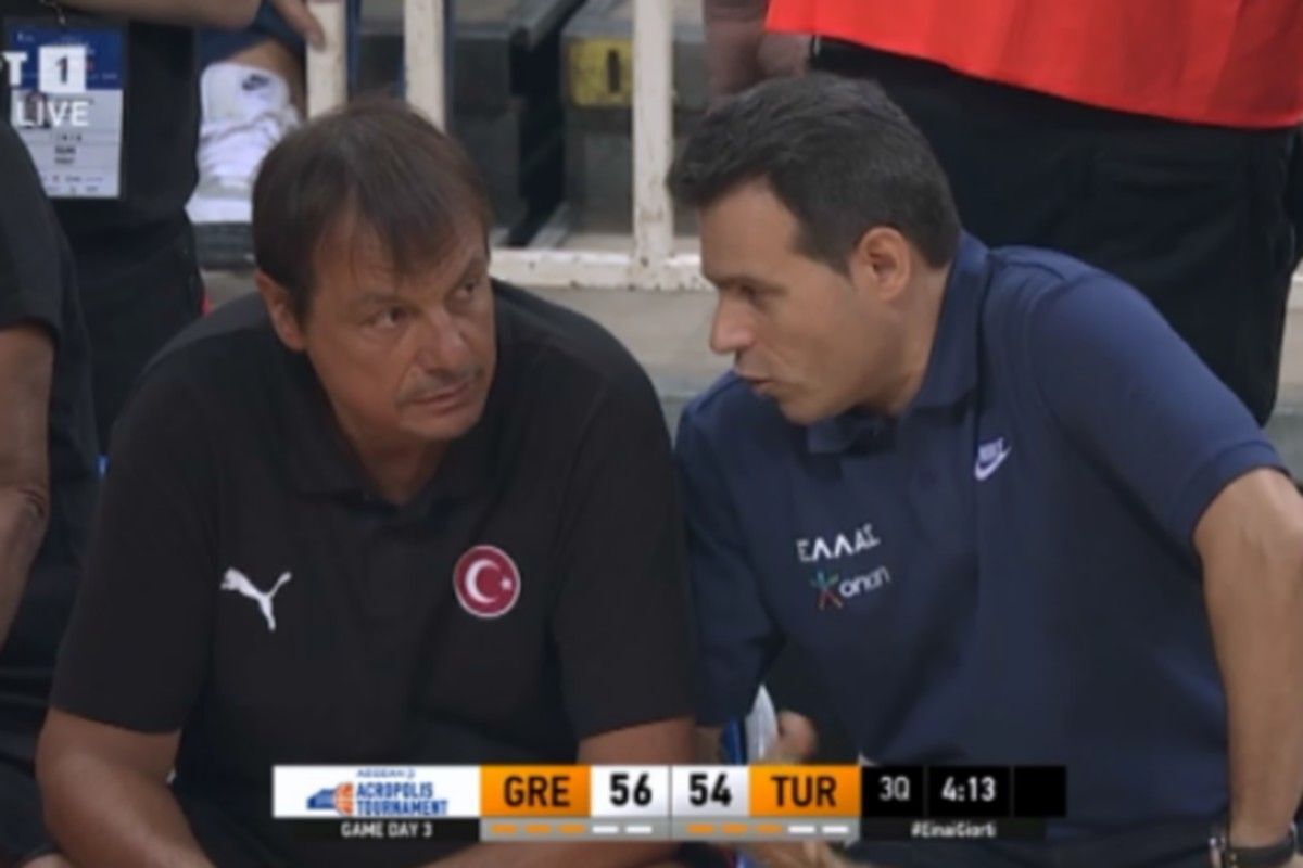 Ο ομοσπονδιακός προπονητής της Τουρκίας δέχτηκε την πρώτη τεχνική ποινή όταν διαμαρτυρήθηκε έντονα στους διαιτητές για να μετρήσουν ένα καλάθι του Σέιν Λάρκιν, μετά από παρέμβαση του Κώστα Αντετοκούνμπο στο 16′.