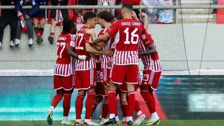 Το παιχνίδι ξεκίνησε ιδανικά για τους «ερυθρόλευκους», που βρήκαν το γκολ στην πρώτη τελική τους. Ήταν στο 6ο λεπτό όταν ο Φορτούνης με σέντρα ακριβείας από δεξιά επέτρεψε στον Ελ Κααμπί να βρει δίχτυα για 16η φορά στο εφετινό πρωτάθλημα και να ανοίξει το σκορ στο «Γ. Καραϊσκάκης».