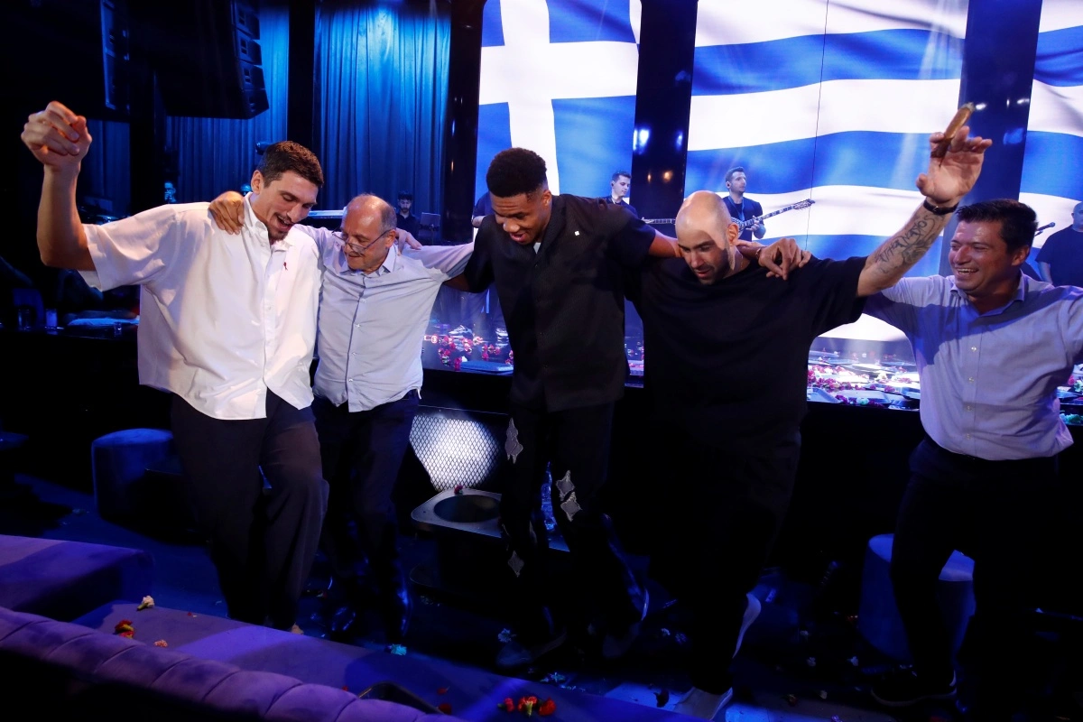 Γιάννης Αντετοκούνμπο, Βασίλης Σπανούλης, Βαγγέλης Λιόλιος, Γιαννούλης Λαρεντζάκης και ο Γενικός Διευθυντής της ΕΟΚ Ντίνος Σβερκούνος έσυραν τον χορό δίπλα στον Θοδωρή Φέρρη και το γλέντι άναψε για τα καλά.
