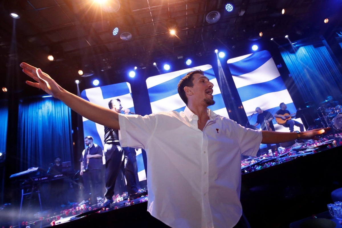 Με μπροστάρη τον ηγέτη της Εθνικής Ομάδας, οι διεθνείς ανέβηκαν στην πίστα και έριξαν τον δικό του χορό, σε γαλανόλευκο φόντο, καθώς το background του νυχτερινού κέντρου, που άνοιξε μόνο και μόνο για να υποδεχθεί τους διεθνείς, το φώτιζε μια ελληνική σημαία.
