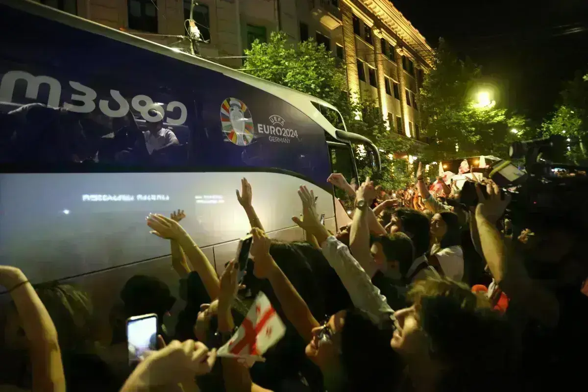 Απίστευτες εικόνες εκτυλίχθηκαν χθες στην Τιφλίδα, με χιλιάδες Γεωργιανούς να υποδέχονται την εθνική ομάδα στο ταξίδι της επιστροφής από τη Γερμανία. Εγινε, μάλιστα, κανονικά παρέλαση με πούλμαν στους δρόμους της πρωτεύουσας, με τους φιλάθλους να αποθεώνουν τον ομοσπονδιακό τεχνικό, Βίλι Σανιόλ, και τους ποδοσφαιριστές της εθνικής ομάδας, με το μεγάλο αστέρι Κβίτσα Κβαρατσχέλια, να είναι στο επίκεντρο των επιδοκιμασιών.