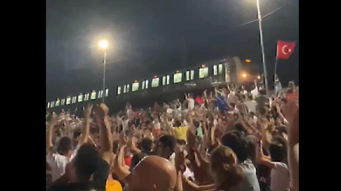 Euro 2024: Ένα προαστιακό τρένο της Κωνσταντινούπολης σταμάτησε για λίγο το ταξίδι του για να επιτρέψει στους επιβάτες να δουν μια σύντομη ματιά στον αγώνα Τουρκίας - Αυστρίας των τελευταίων 16 του Euro 2024 που μεταδόθηκε σε γιγαντιαία οθόνη.