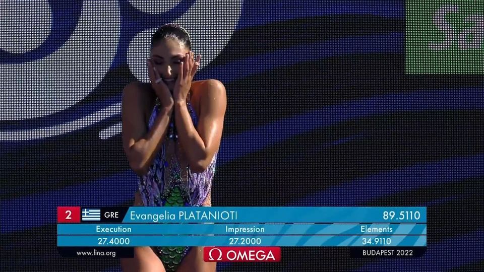 Η Ελληνίδα αθλήτρια εκτέλεσε το πρόγραμμά της άψογα και με 89,5110 βαθμούς ανέβηκε στο βάθρο. Είναι το πρώτο μετάλλιο για την Ελλάδα στην καλλιτεχνική κολύμβηση σε Παγκόσμιο πρωτάθλημα.