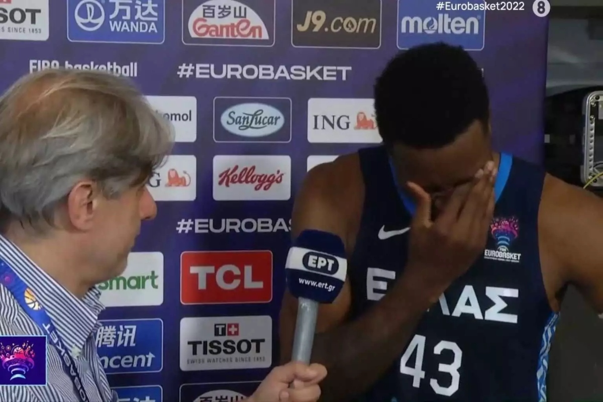 Μαμά δεν κλαίω, μην στενοχωριέσαι. Δεν είναι το τέλος, μόνο η αρχή. Αγαπάμε πολύ αυτή την ομάδα. Όσα ευχαριστώ και να πω στον κόσμο είναι λίγο. Οι Έλληνες στήριξαν την Εθνική ομάδα και την οικογένειά μου σε αυτό το ταξίδι», ανέφερε στην κάμερα της ΕΡΤ ο Έλληνας φόργουορντ.