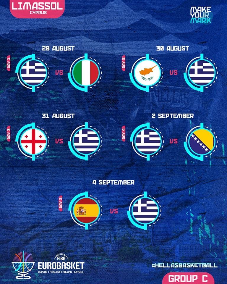 Στις 30 Αυγούστου, η Ελλάδα θα βρει στον δρόμο της την οικοδέσποινα του 3ου ομίλου, Κύπρου, ενώ μία ημέρα αργότερα, στις 31 Αυγούστου, η «επίσημη αγαπημένη» θ’ αντιμετωπίσει τη Γεωργία. Ακολουθεί η Βοσνία/Ερζεγοβίνη στις 2 Σεπτεμβρίου, ενώ τελευταία αντίπαλος της «γαλανόλευκης» θα είναι η Ισπανία, στις 4 Σεπτεμβρίου.