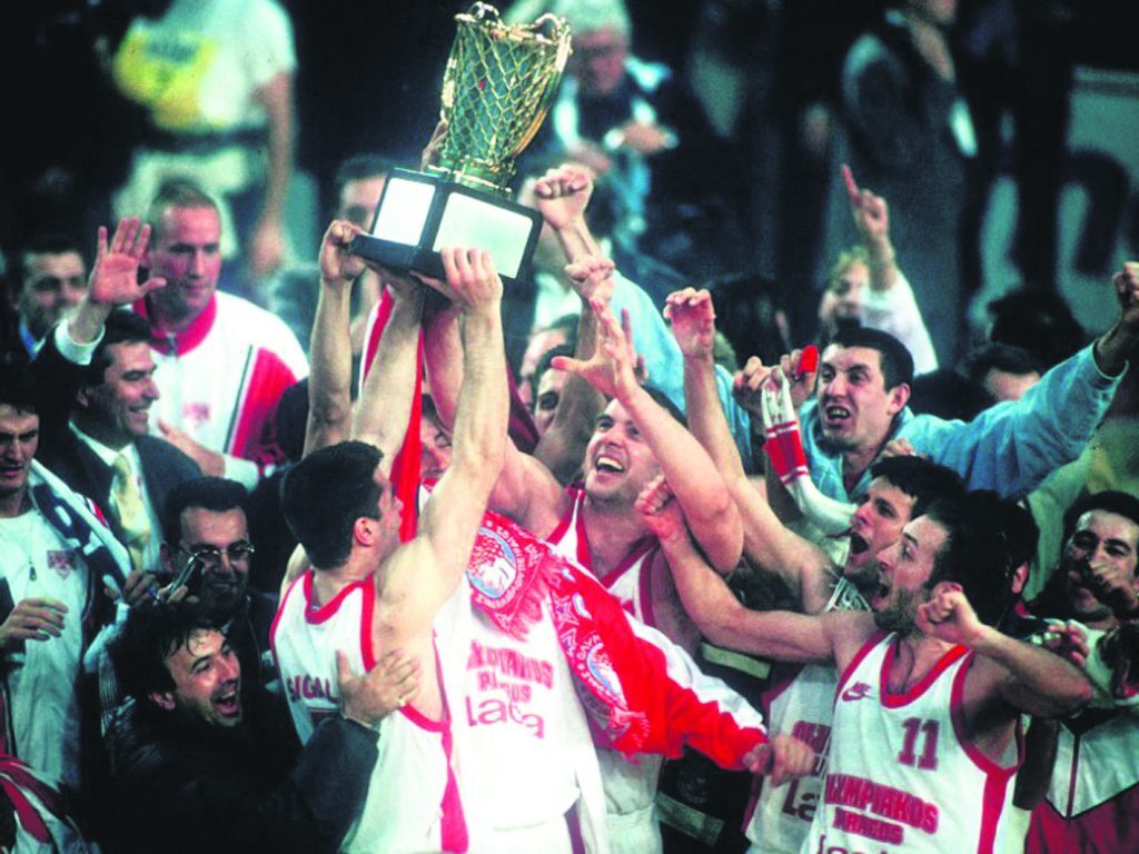 » Ρώμη: Ο,τι δεν κατάφεραν στο Τελ Αβίβ και στη Σαραγόσα, οι «ερυθρόλευκοι» το πετυχαίνουν το 1997 στη Ρώμη. Ο Γιάννης Ιωαννίδης είχε αποχωρήσει, όμως η ομάδα που είχε δημιουργήσει, πιο έμπειρη και ακόμη πιο «δεμένη» και με τον νέο «αέρα» τον οποίο έφερε ο αείμνηστος Ντούσαν Ιβκοβιτς, κατακτά τον τίτλο και κάνει εκείνη τη σεζόν το πρώτο τριπλ κράουν (πρωτάθλημα, Κύπελλο Ελλάδας και Ευρωλίγκα) στην ιστορία του ελληνικού μπάσκετ.