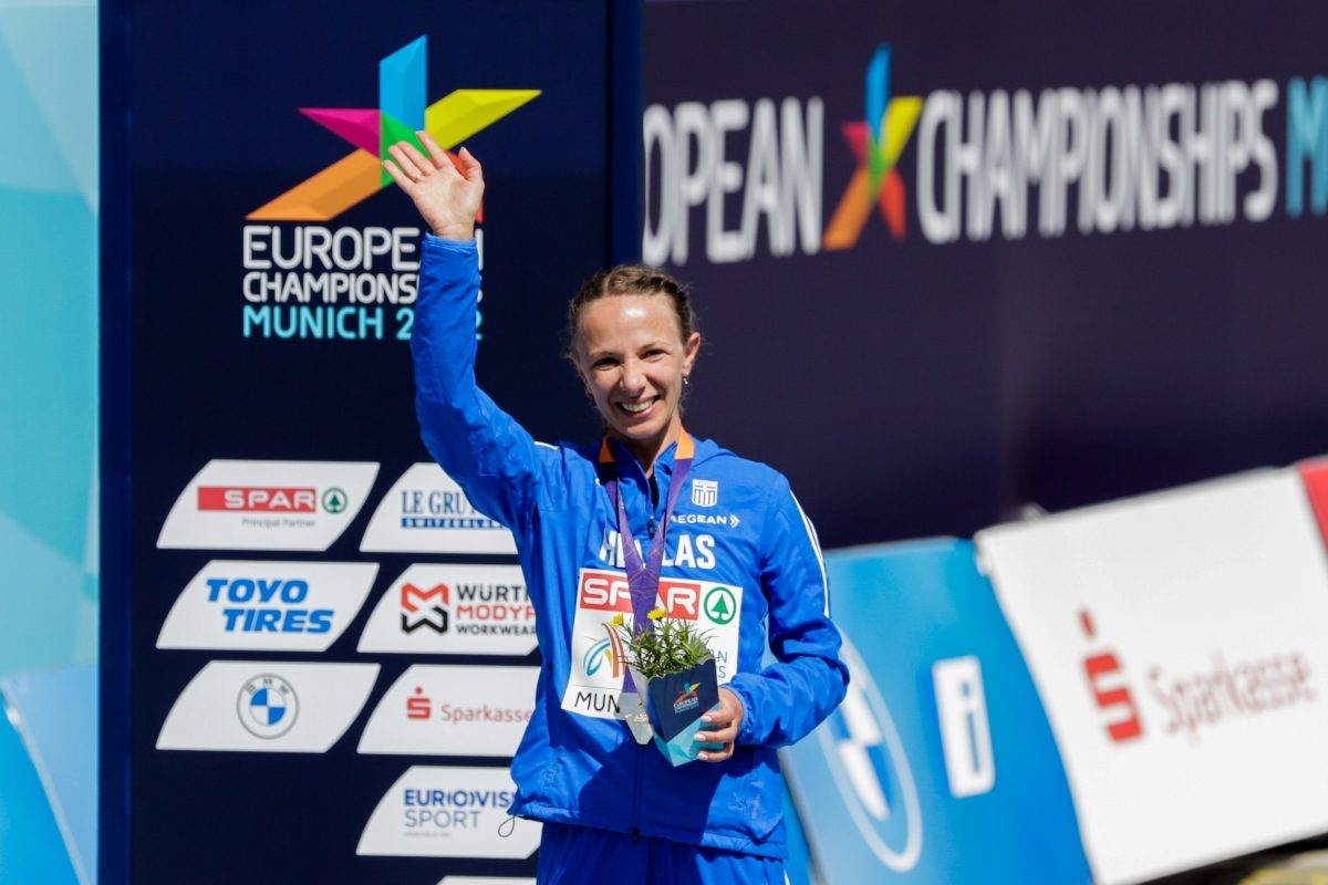 Η Ελληνίδα πρωταθλήτρια του βάδην, κατέκτησε το χρυσό μετάλλιο στα 35 χιλιόμετρα του ευρωπαϊκού πρωταθλήματος, που διεξάγεται στο Μόναχο, αφού τερμάτισε κρατώντας την ελληνική σημαία, καλύπτοντας την απόσταση σε δύο ώρες, 46 λεπτά και 58 δευτερόλεπτα.
