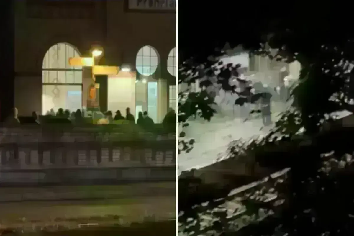 Σε αυτό διακρίνονται δεκάδες άτομα που μπαίνουν στον σταθμό του μετρό, προκειμένου να επιτεθούν στους «πράσινους».