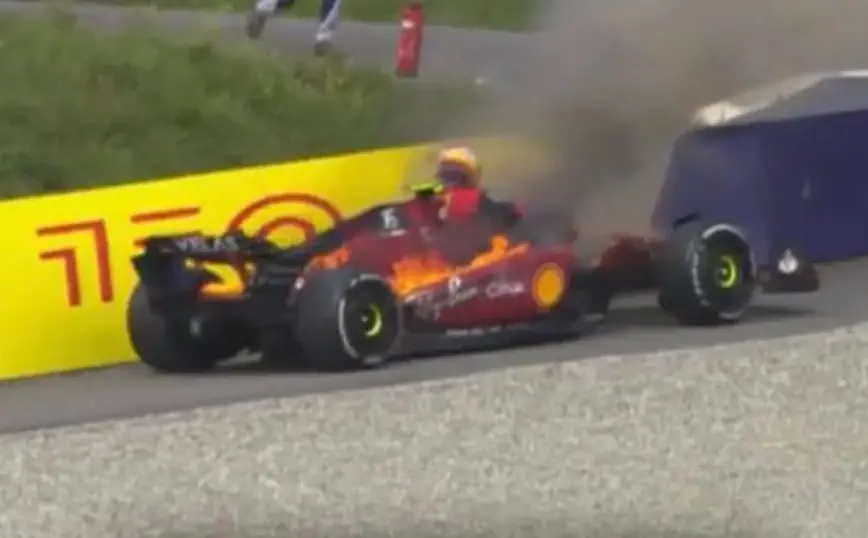 Τελικά αντί για προσπέραση προέκυψε πρόβλημα στον κινητήρα και φωτιά στο μονοθέσιο, με τον Ισπανό οδηγό να βγαίνει εγκαίρως από αυτό.