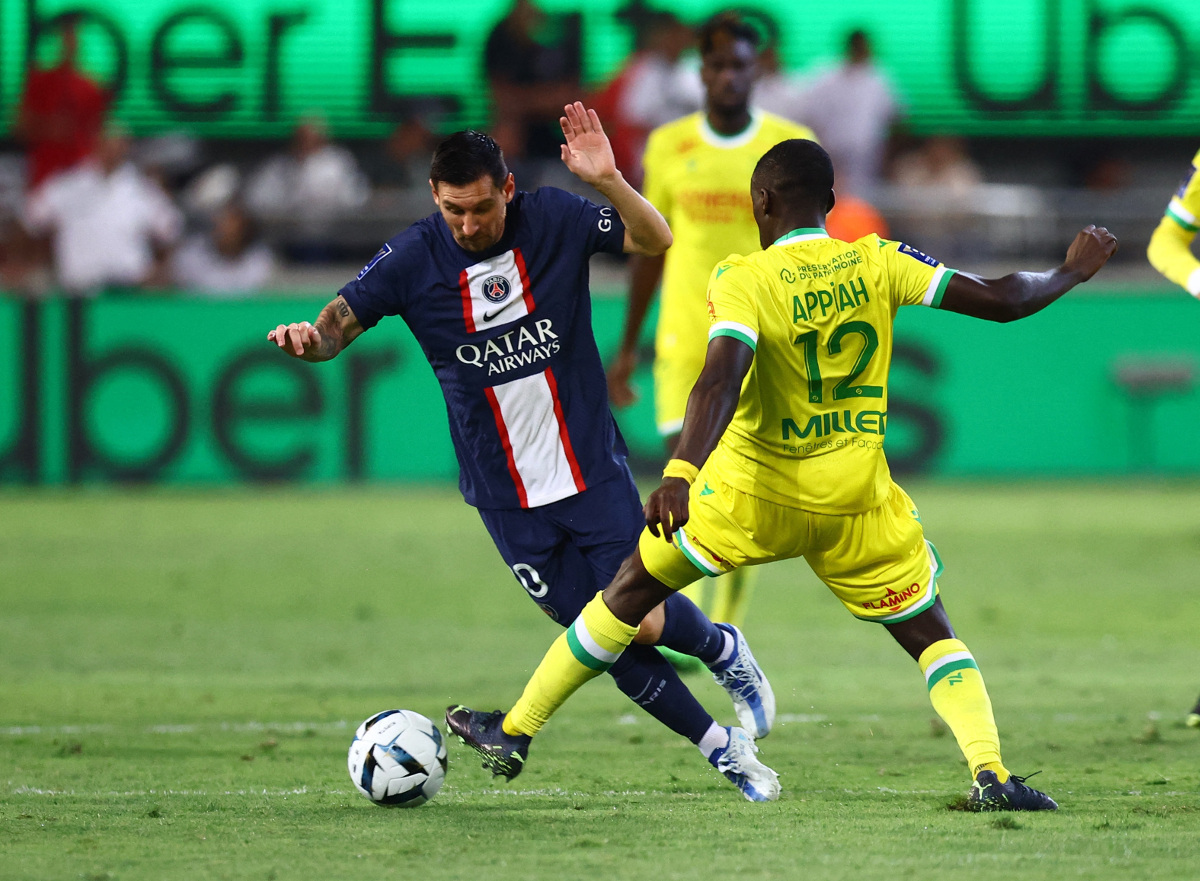 Στο 22’ η Παρί Σεν Ζερμέν άνοιξε το σκορ με τον Μέσι. Ο Αργεντινός δέχθηκε την κάθετη πάσα απ’ τον Νεϊμάρ, πέρασε και τον γκολκίπερ της Ναντ και σκόραρε σε κενή εστία για το 1-0.