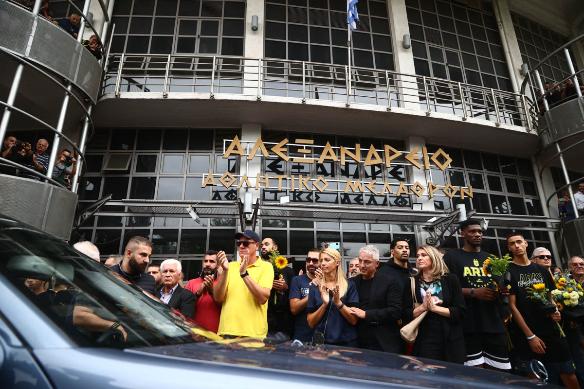 Και δεν είμαι μόνη μου, εδώ είναι όλοι για να σου πούμε το τελευταίο αντίο, να σου φωνάξουμε σιωπηλά πόσο σε αγαπάμε και τι σήμαινες, τι θα σημαίνεις πάντοτε για την οικογένεια σου, για το μπάσκετ, για τον αθλητισμό, για ολόκληρη την Ελλάδα…