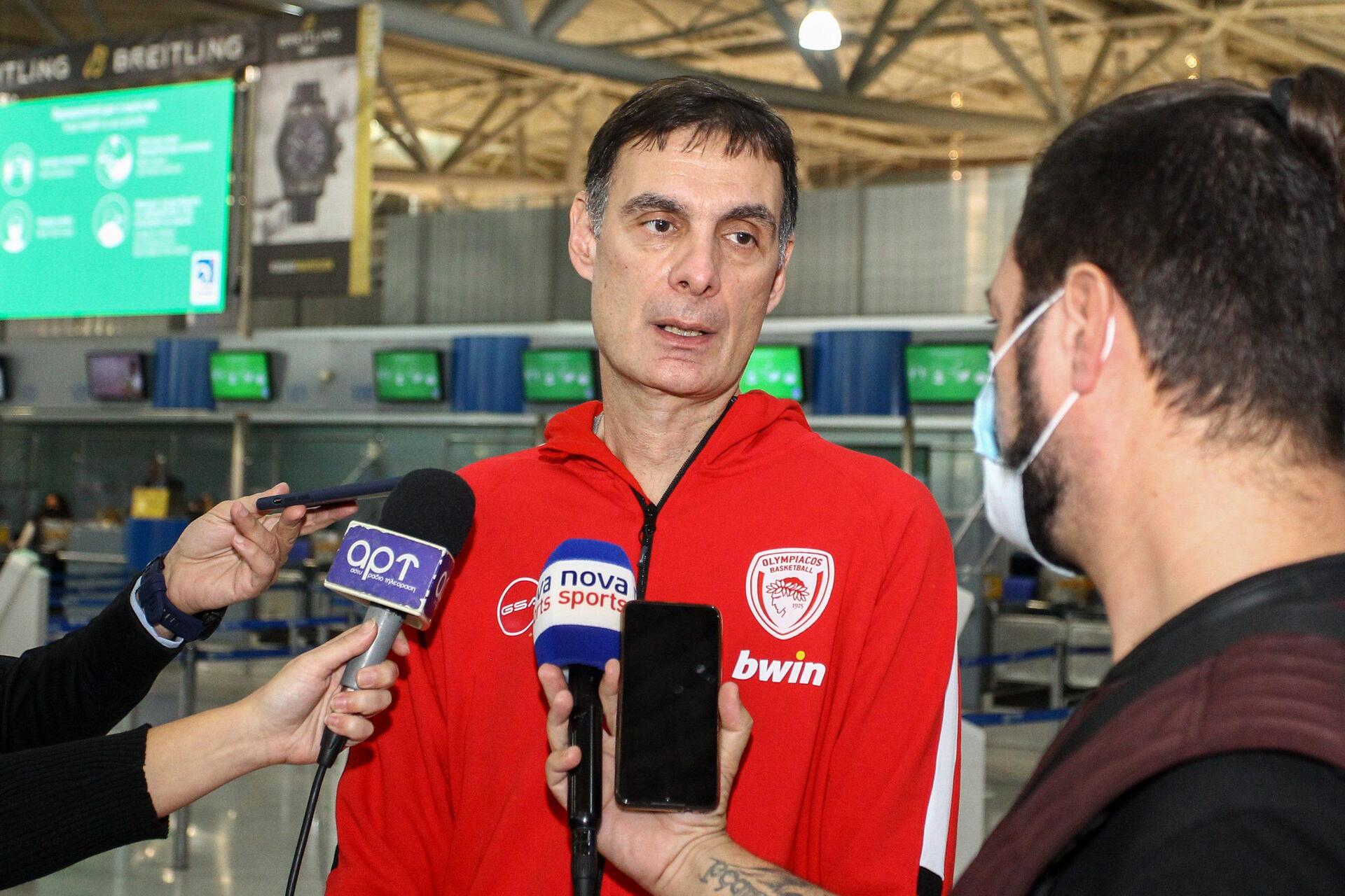 Ο προπονητής των «ερυθρολεύκων» κατά την αναχώρηση της αποστολής του Ολυμπιακού δήλωσε στην κάμερα της Novasports ότι «είναι σημαντικό που επέστρεψαν όλοι οι παίκτες και βρίσκονται στην αποστολή αλλά νομίζω ότι χρειαζόμαστε λίγο χρόνο ακόμα για να βρεθούμε σε καλύτερη κατάσταση».