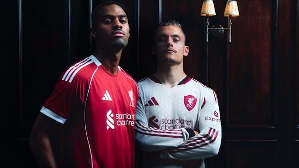 Την Παρασκευή κυκλοφόρησε η νέα εντός έδρας εμφάνιση της Liverpool FC, η οποία αποτυπώνει το DNA του συλλόγου στην πιο αγνή του μορφή, με τη χαρακτηριστική dark strawberry απόχρωση του κόκκινου και τις τρεις λευκές ρίγες της adidas να διατρέχουν τα μανίκια. Το κλασικό έμβλημα του Liver Bird κοσμεί το στήθος της φανέλας, ενώ ο καθαρός στρογγυλός γιακάς δίνει μια σύγχρονη, αθλητική αισθητική, με προσεγμένο ριμπ ύφασμα στις μανσέτες που ολοκληρώνει τον σχεδιασμό, αντάξιο της κληρονομιάς της LFC.
