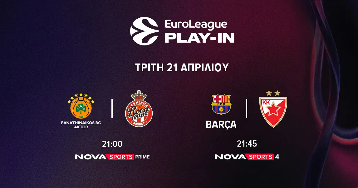 21:00 EuroLeague – Play In Showdown: Παναθηναϊκός AKTOR-Μονακό Novasports Prime σε περιγραφή του Χρήστου Καούρη και ρεπορτάζ των Δώρας Παντέλη και Αποστόλη Λάμπου