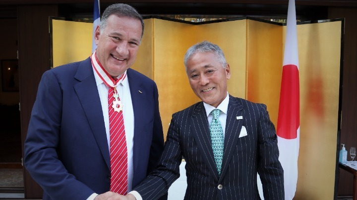 Παραλαμβάνοντας το παράσημο, ο πρόεδρος της Ελληνικής Ολυμπιακής Επιτροπής δήλωσε: «Αποτελεί μεγάλη τιμή για μένα αυτό το παράσημο. Είναι κάτι το ξεχωριστό, όπως ξεχωριστοί ήταν οι Ολυμπιακοί Αγώνες που διοργανώσατε. Ο ιαπωνικός λαός σε εξαιρετικά δύσκολες συνθήκες όπως είναι αυτές που ζούμε, πραγματοποίησε με μεγάλη επιτυχία τους Αγώνες, όταν αυτή η αποστολή φαινόταν αδύνατο να εκπληρωθεί. Η Ιαπωνία μας έκανε όλους υπερήφανους με αυτά που πέτυχε και οι Ολυμπιακοί Αγώνες αποτέλεσαν τεράστια επιτυχία. Να συγκεντρώσεις τόσο κόσμο κάτω από αυτές τις συνθήκες, είναι κάτι που μόνος ένας λαός όπως ο ιαπωνικός, με πειθαρχία, αποφασιστικότητα και πάθος για τον αθλητισμό, μπορεί να πετύχει. Από την πλευρά μας κάναμε ό,τι καλύτερο μπορούσαμε, ανάβοντας την Ολυμπιακή Φλόγα, αλλά και στέλνοντας την ελληνική ομάδα στο Τόκιο. Οι Ολυμπιακοί Αγώνες του Τόκιο ήταν ιδιαίτεροι για μένα και θα μείνουν για πάντα στην καρδιά μου, γιατί για πρώτη φορά συμμετείχα ως μέλος της ΔΟΕ, αλλά και επειδή είχα την τιμή και τη χαρά να απονείμω το χρυσό μετάλλιο σε έναν Έλληνα αθλητή, τον κωπηλάτη μας Στέφανο Ντούσκο».