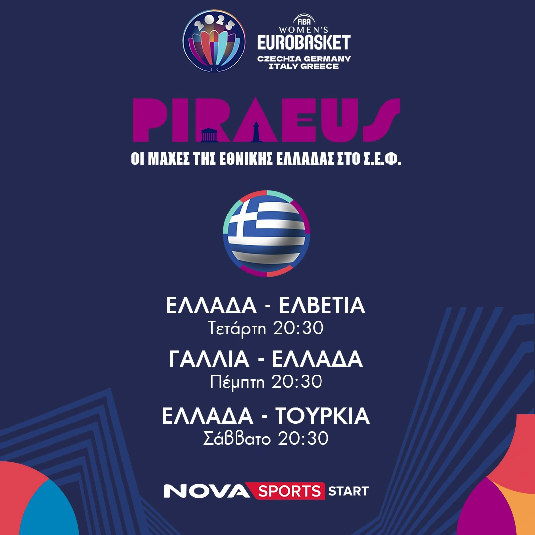20:30 FIBA Women’s EuroBasket: Ελλάδα-Ελβετία Novasports Start σε περιγραφή του Χρήστου