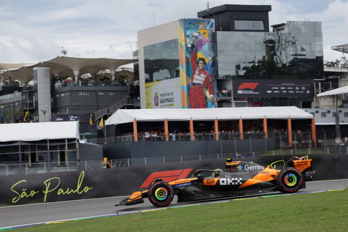 Στις πρώτες θέσεις δεν άλλαξε κάτι στην εκκίνηση. Λίγο πιο πίσω, Σαρλ Λεκλέρ και, κυρίως, Λιούις Χάμιλτον κέρδισαν θέσεις βάζοντας πίεση στον έκτο Φερνάντο Αλόνσο, τον οποίο προσπέρασε από νωρίς ο Φερστάπεν. Ωστόσο, το σπριντ διακόπηκε στον 6ο γύρο, με τους Πιάστρι (στροφή 2) και Φράνκο Κολάπιντο (στροφή 3) να χτυπούν στις μπαριέρες γλιστρώντας στο ολισθηρό οδόστρωμα, με λίγα δευτερόλεπτα διαφορά.