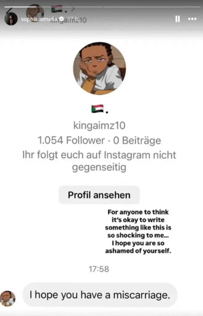 Αναφερόμενη στην πρώτη ανάρτηση, η Σοφία Χάβερτς έγραψε στους followers της: «Το να πιστεύει κάποιος ότι είναι εντάξει να γράψει κάτι τέτοιο είναι τόσο σοκαριστικό για μένα. Ελπίζω να ντρέπεσαι τόσο πολύ για τον εαυτό σου».