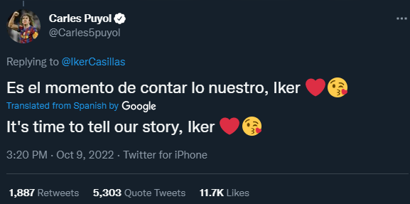 — Iker Casillas (@IkerCasillas) October 9, 2022