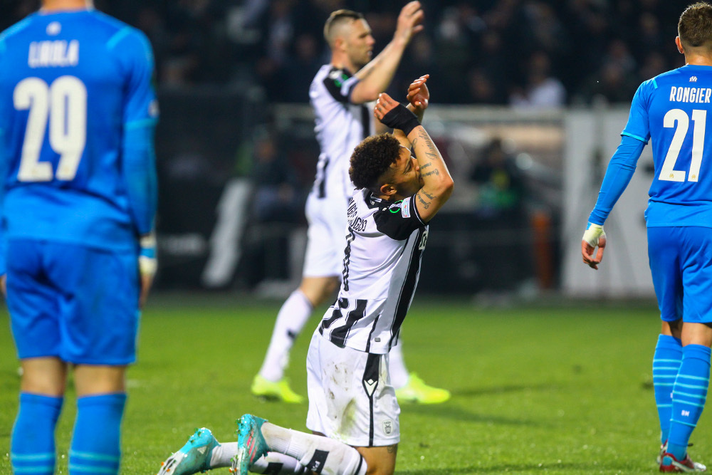 Η πρώτη απειλή της Μαρσέιγ ήρθε στο 26′ μετά από ένα λάθος του Ίνγκασον ο οποίος δεν έκανε καλό κοντρόλ με τη μπάλα να του φεύγει να πηγαίνει προς το αριστερό κάθετο δοκάρι και εν συνεχεία τον αμυντικό του ΠΑΟΚ να διώχνει.