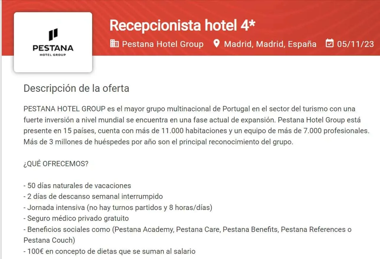 Ωστόσο, η εταιρεία προσφέρει μερικές έξτρα παροχές όπως 50 ημέρες άδεια τον χρόνο, έξτρα επίδομα 100 ευρώ και ιδιωτική ιατρική ασφάλιση. Τα συμβόλαια θα είναι αορίστου χρόνου και πλήρης (πενθήμερης) απασχόλησης, ενώ οι εργαζόμενοι θα μπορούν επίσης να επωφεληθούν από τις υπηρεσίες και τις προσφορές του ξενοδοχείου χωρίς κόστος.