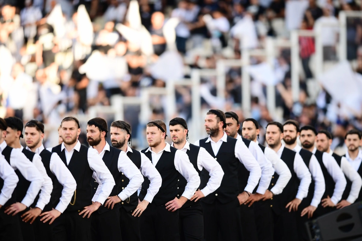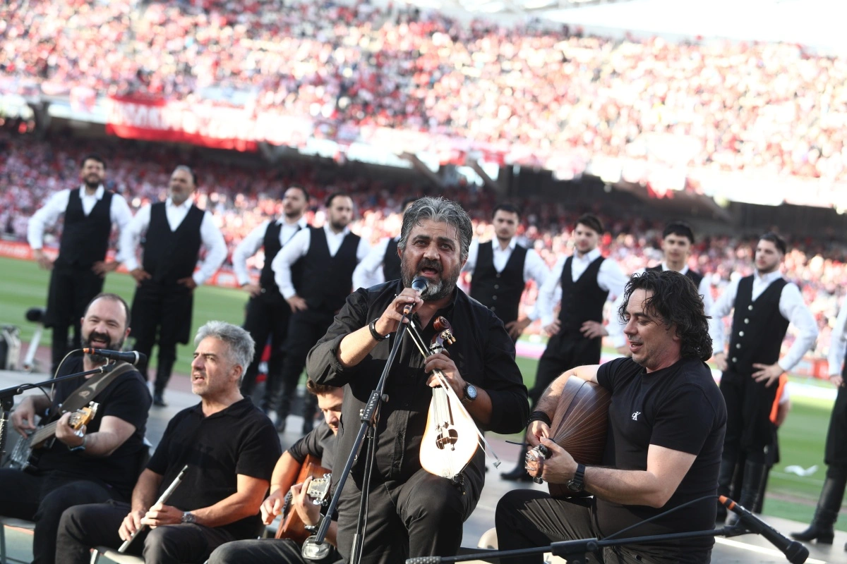 Πολλά είναι τα σημαιάκια και οι σημαίες που υπάρχουν σε αμφότερους τους οπαδούς, ενώ τα συνθήματα εκατέρωθεν δεν σταματούν.