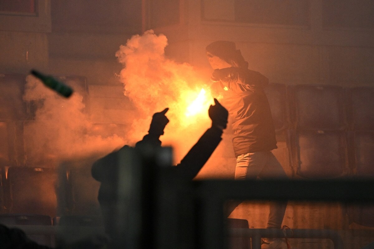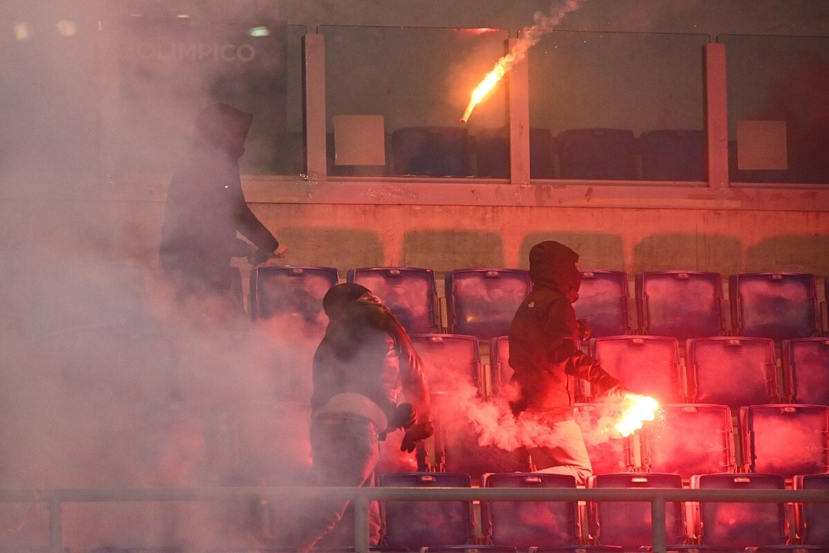 Κατά τη διάρκεια της προθέρμανσης των δύο ομάδων οι ultras επιδόθηκαν σε πόλεμο φωτοβολίδων και καπνογόνων! Οι δύο αντιμαχόμενες πλευρές ήρθαν πολύ κοντά με την αστυνομία μάλλον να αιφνιδιάζεται απ’ τα επεισόδια.