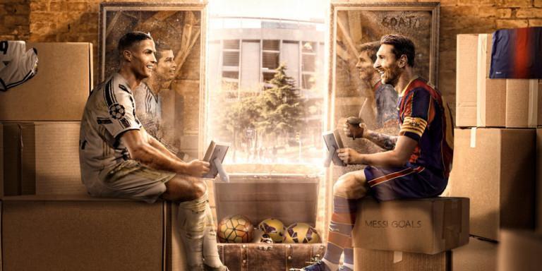 Φαίνονται να συνομιλούν σαν δυο καλοί φίλοι. Στον καθρέπτη μάλιστα, ο CR7 απεικονίζεται με φανέλα της Ρεάλ, ενώ στον καθρέπτη του Μέσι υπάρχει και το «GOAT» (Ο καλύτερος όλων των εποχών).