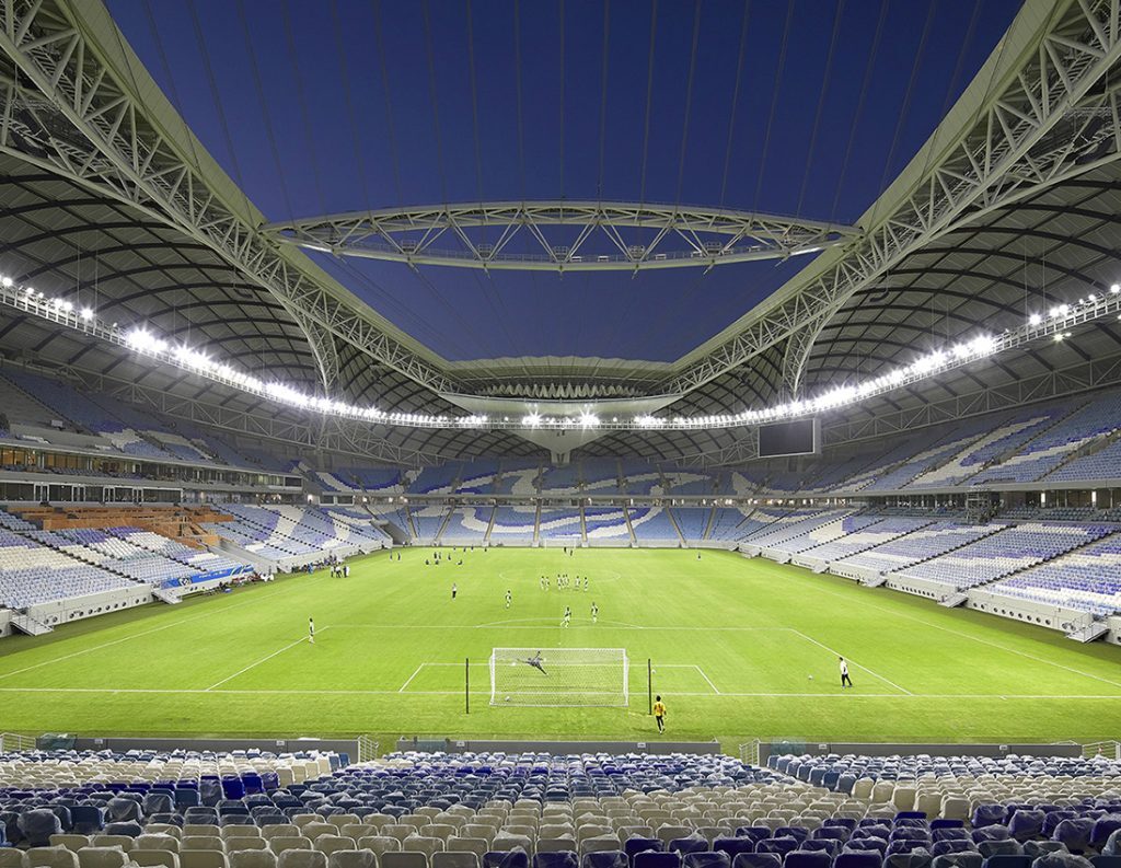 Διεθνές Στάδιο Χαλίφα, ή απλώς Εθνικό Στάδιο (45.416). Είναι το ένα από τα τρία που εδρεύουν στην πόλη Αλ Ραγιάν. Στάδιο πολλαπλών χρήσεων, μέρος του αθλητικού συγκροτήματος της Ντόχα. Πήρε το όνομα του από τον πρώην Εμίρη του Κατάρ, Χαλίφα μπιν Χάμαντ Αλ Δάνι. Το 2017, έλαβε βαθμολογία τεσσάρων αστέρων (το πρώτο στον κόσμο με τέτοιο έπαινο) από ειδική επιτροπή που αξιολογεί την ικανότητα των σταδίων. Ακόμη και τώρα απασχολεί 30.000 εργάτες. Θα φιλοξενήσει οκτώ αγώνες, εκ των οποίων το «μικρό» τελικό της διοργάνωσης.