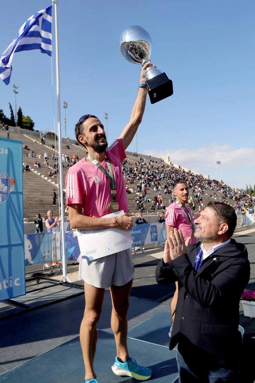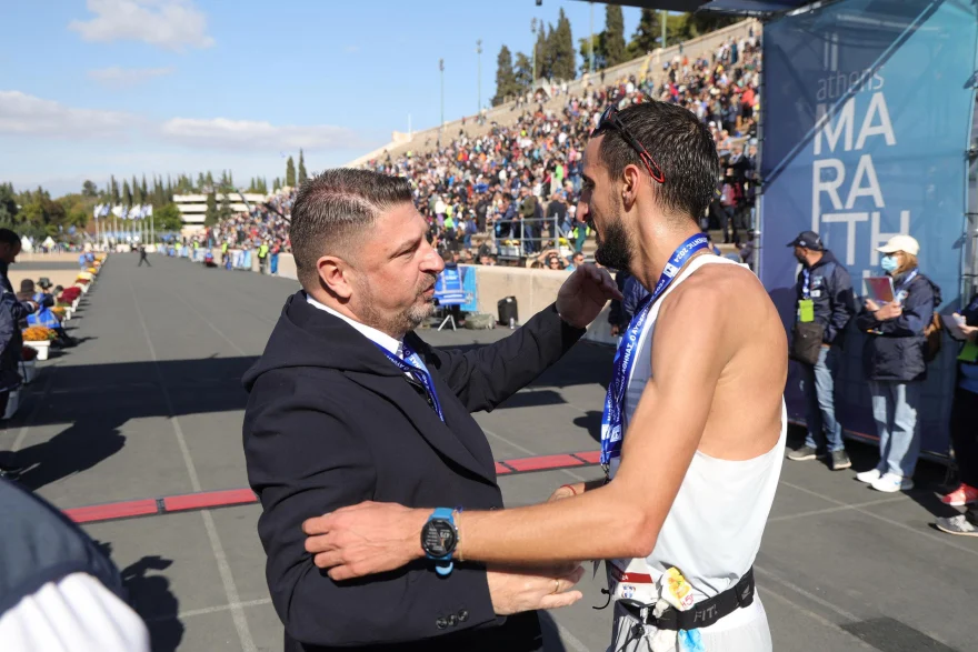 Εγκάρδια ήταν επίσης και η συνομιλία του είχε με τον «αρχιτέκτονα» των μεγάλων ολυμπιακών μεταλλίων και προπονητή του Μίλτου Τεντογλου, Γιώργο Πομάσκι, τον οποίο συνεχάρη για την αθόρυβη, πλην όμως κομβική συνεισφορά του στον ελληνικό αθλητισμό. Ο Περιφερειάρχης –ο οποίος σημειωτέον σήμερα έχει και τα γενέθλιά του– κράτησε την κορδέλα του τερματισμού στο Καλλιμάρμαρο μαζί με τις δύο «κεφαλές» του ΣΕΓΑΣ, την Πρόεδρο Σοφία Σακοράφα και τον Αντιπρόεδρο Κώστα Κεντέρη. Απένειμε μάλιστα το βραβείο στον πρώτο νικητή της κλασικής διαδρομής, τον δρομέα του «ΓΑΣ Ιλισσός» Χαράλαμπο Πιτσώλη.