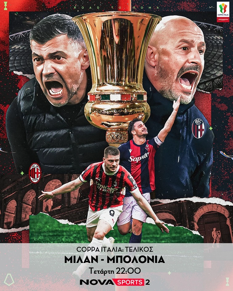 22:00 Coppa Italia – Τελικός: Μίλαν-Μπολόνια Novasports2 σε περιγραφή του Γρηγόρη