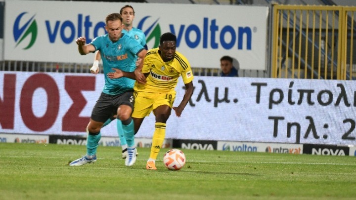 Από ενέργεια του Ντάνιελ Μαντσίνι, η μπάλα έφτασε στον Γκρέι που με τη μία πλάσαρε για το 0-1. Παρά την ψυχρολουσία, οι Αρκάδες δεν πτοήθηκαν. Ο Κουέστα έδιωξε εντυπωσιακά σε κόρνερ το δυνατό σουτ του Φεντερίκο Αλβαρες στο 27’ ενώ λίγο πριν το τέλος του ημιχρόνου, ο Αντώνης Τσιφτσής αιφνιδιάστηκε στο γύρισμα του Γκρέι, με την μπάλα να αναπηδάει στο στήθος του.