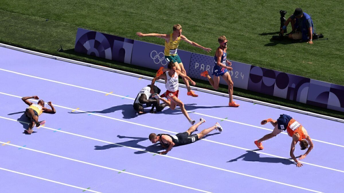 Ο Ισπανός Thierry Ndikumwenayo και ο Dominic Lokinyomo Lobalu της Ολυμπιακής Ομάδας των Προσφύγων έπεσαν επίσης, ενώ ο Ολλανδός Mike Foppen ξεπέρασε αυτούς που ήταν στο έδαφος μπροστά του, αλλά στη συνέχεια σκόνταψε.
