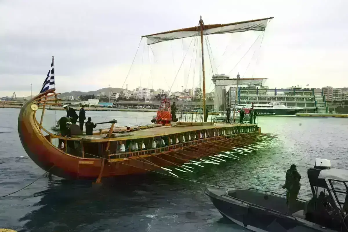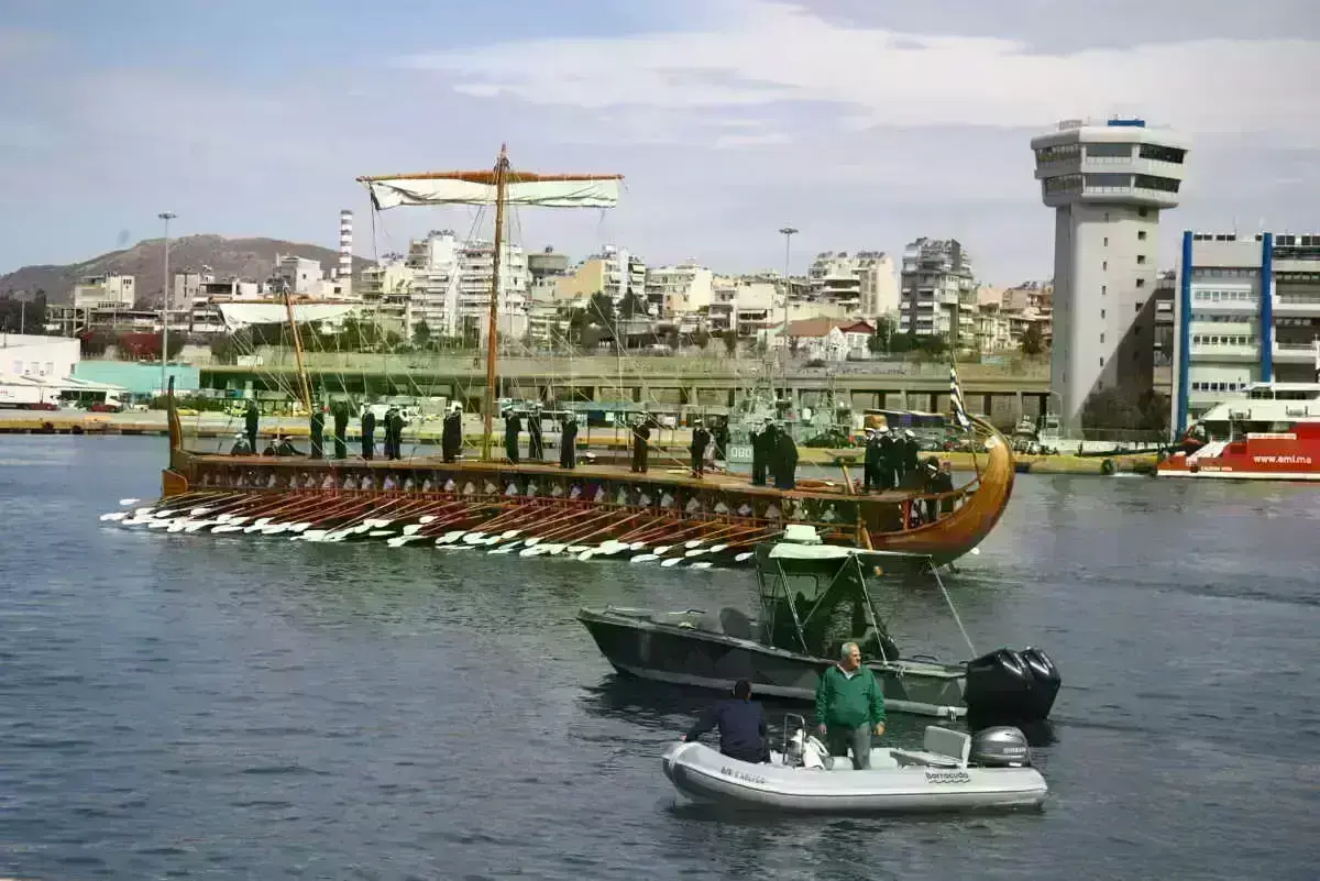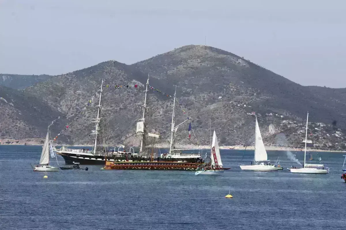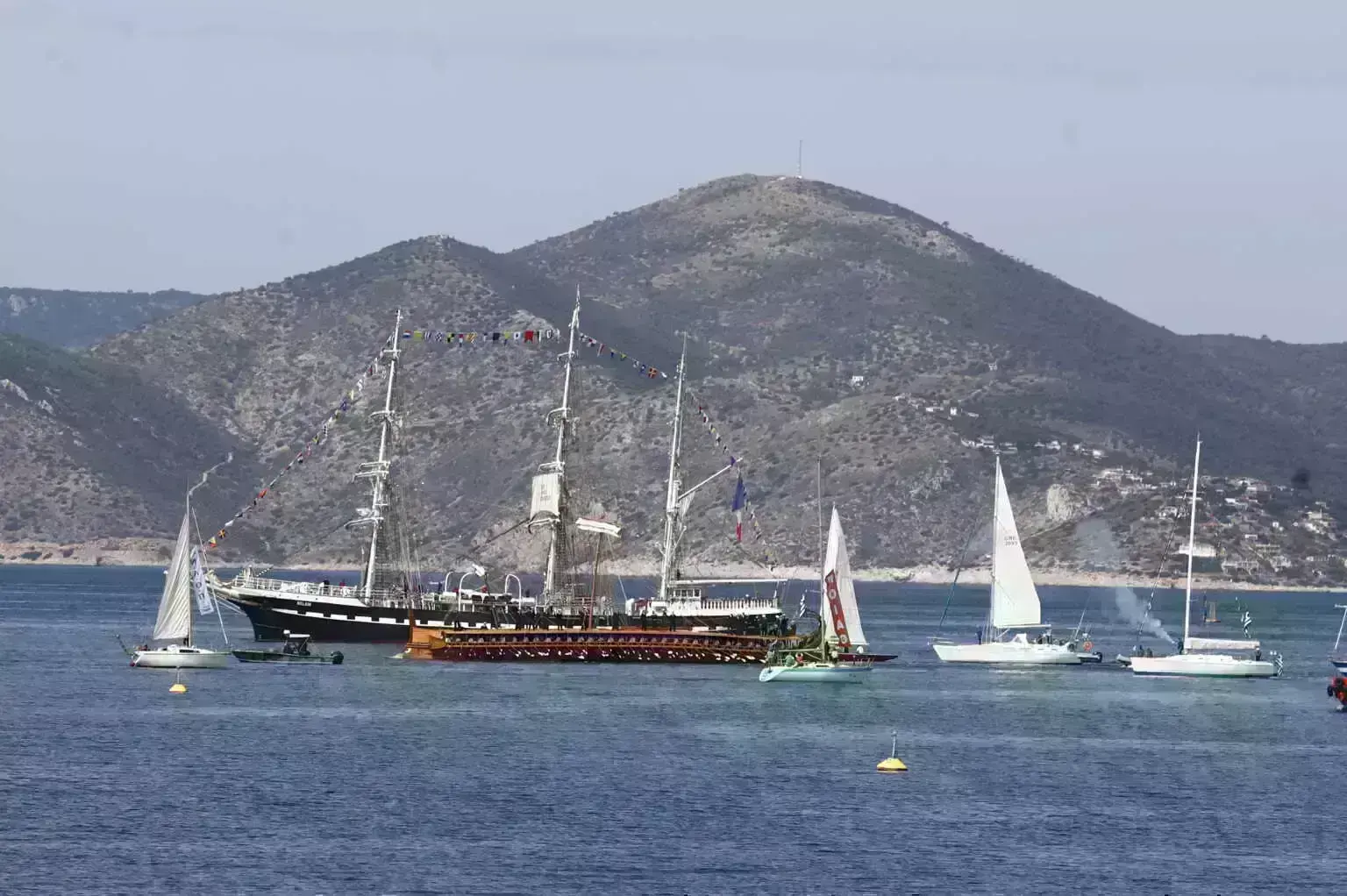 Την Ολυμπιακή Φλόγα “ξεπροβόδισε” ένα άλλο ιστορικό πλοίο, η τριήρης “Ολυμπιάς” του ελληνικού πολεμικού ναυτικού. Έξω από το λιμάνι περίμεναν περίπου 25 ιστιοπλοϊκά (για να συνοδεύσουν το “Belem” μέχρι το Μικρολίμανο).