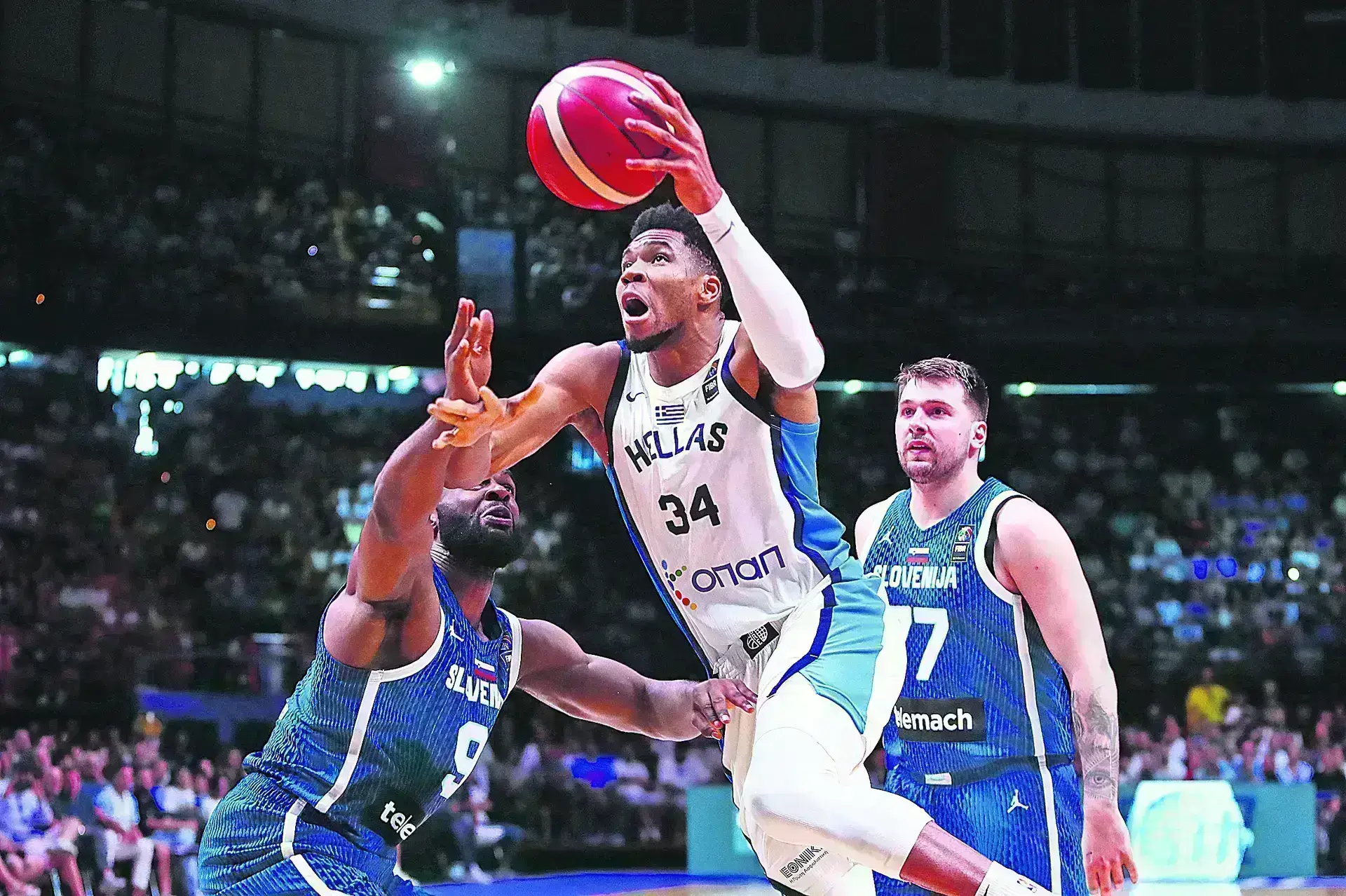 Μπάσκετ ανδρών: Καλάθης, Γουόκαπ, Τολιόπουλος, Μωραΐτης, Καλαϊτζάκης, Παπανικολάου, Λαρεντζάκης, Χαραλαμπόπουλος, Γ. Αντετοκούνμπο, Παπαγιάννης, Μήτογλου, Κ. Αντετοκούνμπο ή Κουζέλογλου