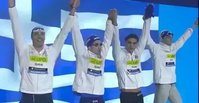 Έδωσε τρίτος στον Κωνσταντίνο Στάμου που επίσης αγωνίστηκε για πρώτη φορά στο κορυφαίο γεγονός. Κολύμπησε σε 1:48.00 και πήρε σκυτάλη 6ος ο Ανδρέας Βαζαίος που έφυγε τελευταίος στην 4η παρουσία του σε Ο.Α. Η Ελλάδα τερμάτισε τελικά στην 5η θέση με 7:09.60, πολύ κοντά στο πανελλήνιο ρεκόρ (7:09.10).