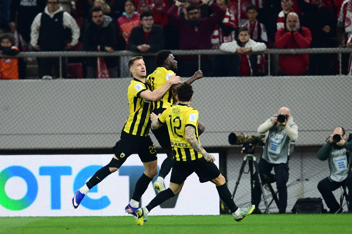 Η ΑΕΚ πήρε το ντέρμπι με τον Ολυμπιακό στο Γεώργιος Καραϊσκάκης και πήρε προβάδισμα τίτλου, αυξάνοντας τη διαφορά από τους ερυθρόλευκους και τον ΠΑΟΚ στους πέντε βαθμούς. Οι γηπεδούχοι πέτυχαν γκολ με τον Γιαζίτσι στο 90+7′ που ακυρώθηκε για οφσάιντ.