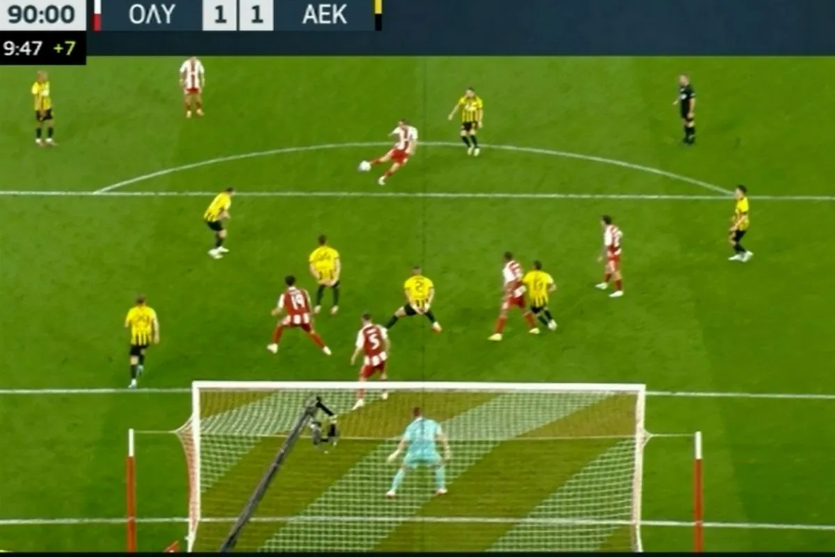 Η ΑΕΚ ευτύχησε στην πρώτη της φάση στο ματς να προηγηθεί. Ο Περέιρα έψαξε τον Γιόβιτς στην περιοχή του Τζολάκη, όμως ο Ντάνι Γκαρθία έβαλε την κόντρα. Η μπάλα στρώθηκε στον Κοϊτά κι ο Μαυριτανός εκτέλεσε σωστά δίνοντας προβάδισμα στην Ένωση.